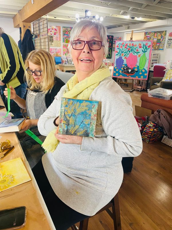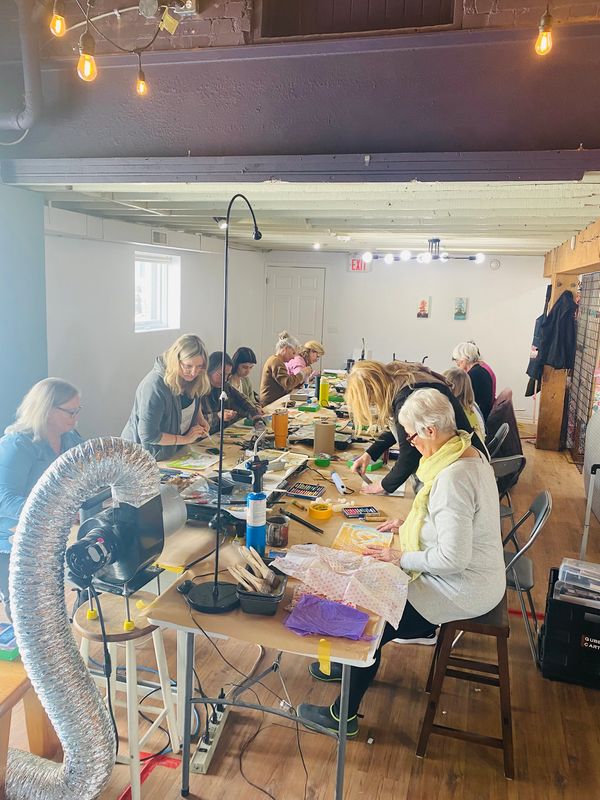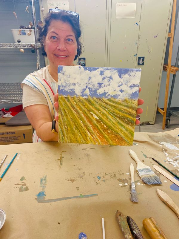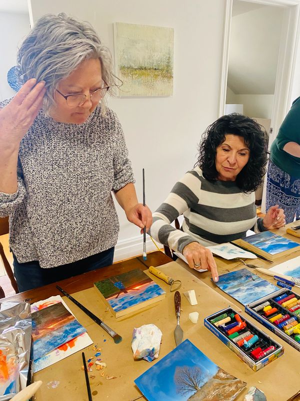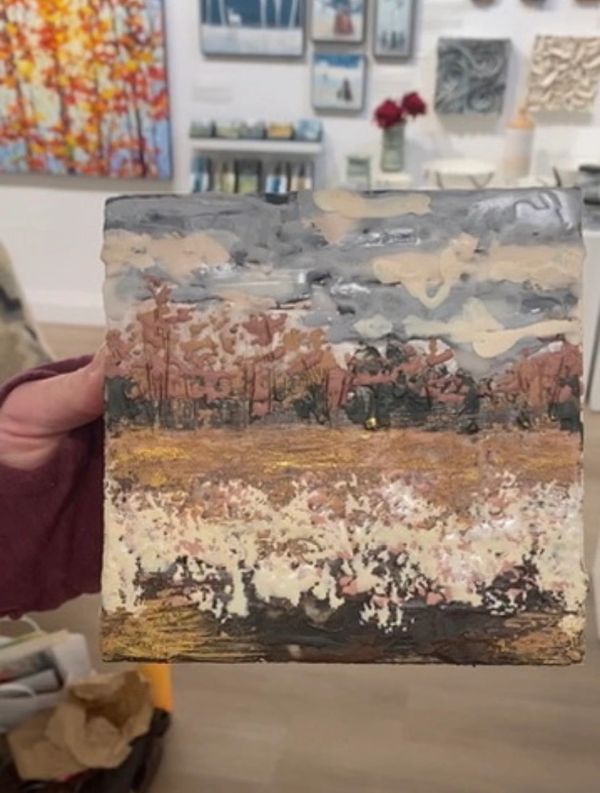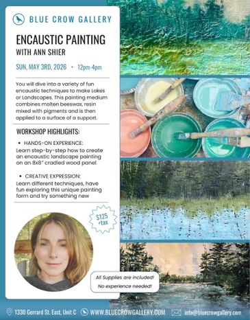 Join Artist Ann Shier to learn step-by-step how to create an encaustic landscape painting on an 8”x8" wood substrate. We will be exploring a variety of fun encaustic techniques to create your own unique encaustic painting.